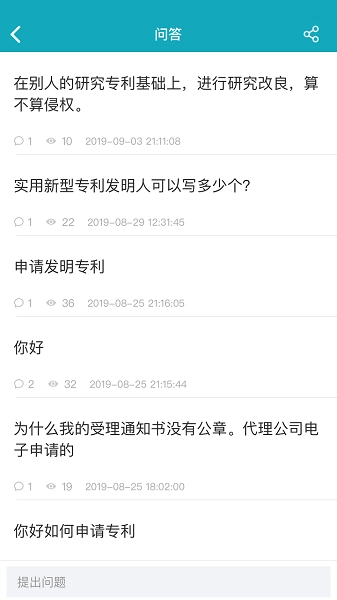 【问答功能说明】用户点击首页的“问答”入口后,既能浏览平台上已有的问题,也能积极参与互动:可在专利问答板块提交新问题,在具体问题的详情页针对问题进行回答,此外还能对其他用户已发布的回答进行点赞操作。