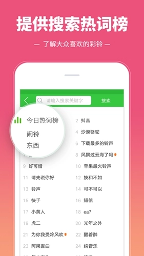 火热手机铃声、经典老歌、个性Diy彩铃(炫铃)……快来看看大家都在搜什么吧。