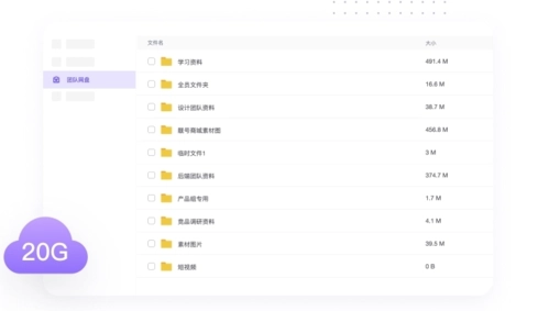可以免费申请容量最大达20G的团队网盘,团队成员能够把与团队相关的文件上传至该网盘,成员之间可以实时同步和查看这些文件,有助于实现文件的同步与集中管理。
