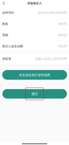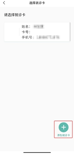 在选择就诊卡页面中点击添加就诊卡按钮;