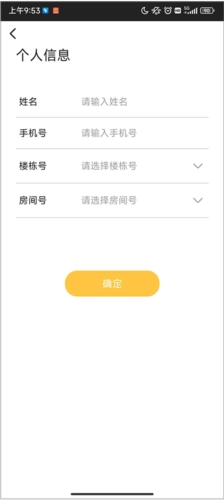 请完成个人信息的填写,包括姓名、手机号、楼栋号和房间号。