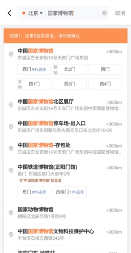 接着搜索要前往的【目的地】,并从搜索列表里挑选合适的选项。