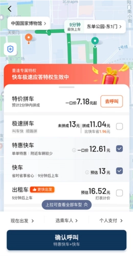 然后选择想要乘坐的车型,点击【确认呼叫】即可。