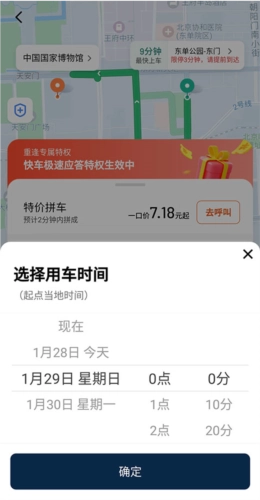 要是打算提前预约出行,可点击左下角的按钮进行【选择用车时间】。