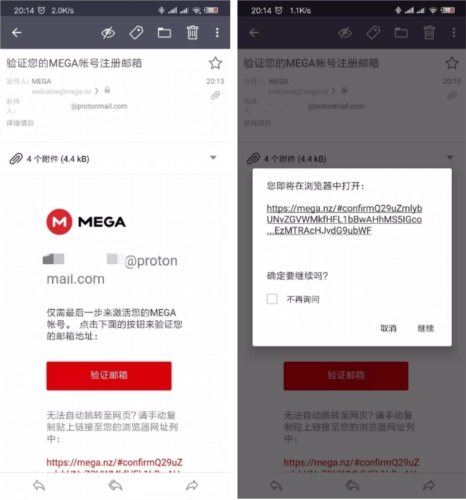 点击档案后,若文件是相片或手机支持的其他格式,可直接在MEGAApp内预览;比较便捷的是,从应用里还能直接“分享”档案并生成MEGA链接,不过目前该链接只会直接跳转至邮件功能,暂不支持复制或通过其他方式分享。