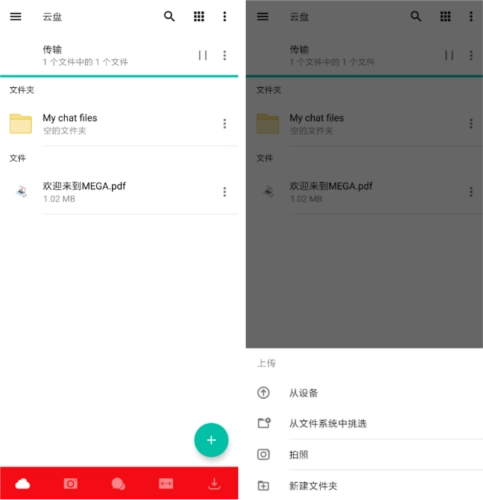 可以直接在App里上传档案,比如手机里存的照片、视频,然后通过MEGASync同步工具把这些数字资料同步到电脑上。另外,它还有新建文件夹、管理在线文件的功能。尝试用MEGAApp上传档案,感觉速度挺快的,而且也能使用取消功能。