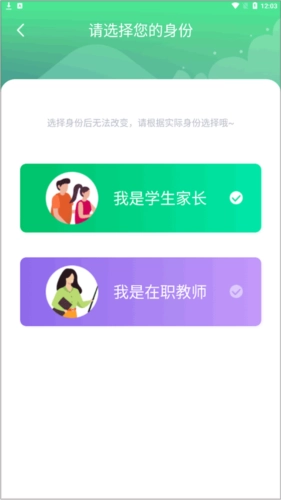 安装好智安校园应用后,打开软件,接着选择对应的身份——家长或老师。