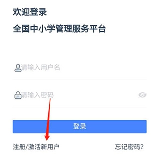 安装学有优教后打开该应用,进入全国中小学管理服务平台,随后点击下方的“注册/激活新用户”选项。