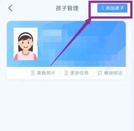 在孩子管理界面中,若已解除与孩子的绑定,若想重新关联,可通过选择“添加孩子”的方式进行找回。