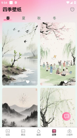 1. 四季主题专区独具匠心,春花秋月、夏雨冬雪之景,随季节更替呈现在手机桌面,把自然的诗意巧妙融入其中,营造出浪漫氛围。
