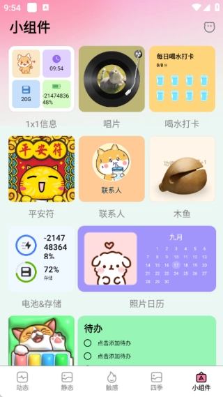 3、拥有一系列丰富且实用的小组件,像表情电量、喝水打卡之类。这些小组件不但能为桌面增添不少趣味,还能满足日常的功能需求,助力生活更加井然有序。