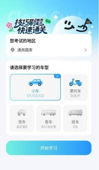 2、为确保平台推荐的题库契合您的需求,我们需明确考试类型,点击“开始学习”。