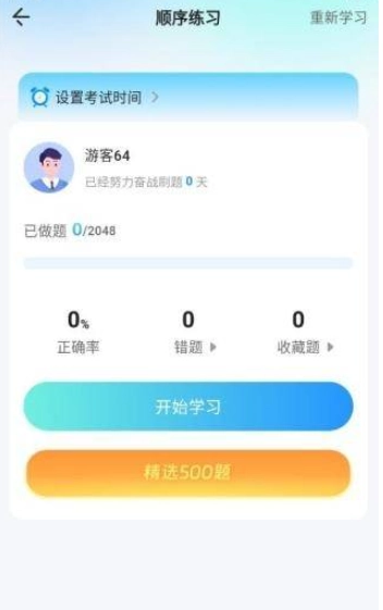 4、选择顺序练题模式,了解自身答题状况后,点击“开始学习”,即可展开刷题操作。