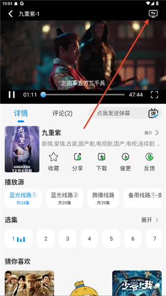 进入详情页,查看剧情简介、演员表、更新记录等信息。
