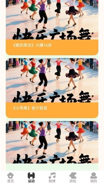 3.进入到运动页面可查找你喜欢的广场舞教学资源点击进入