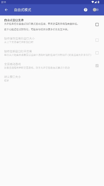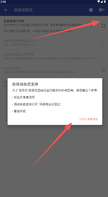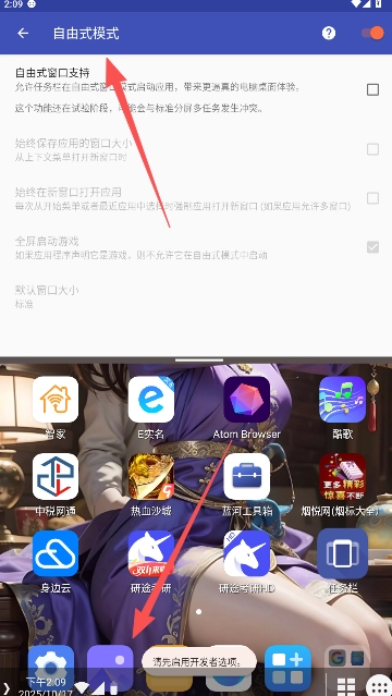 3、勾选自由式窗口支持后面的方框开启。