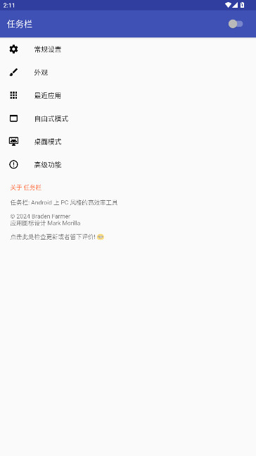《任务栏手机版》堪称一款极为实用的手机性能强化工具,它具备多样丰富的配置选项及辅助功能设置。借助这些,能在适宜有效的系统配置环境里,充分激活软件自身的最大潜能,进而提升手机整体性能,让用户轻松达成高效工作的任务目标。要是您期望把自己的安卓手机或者平板,打造成一个高效运转的多任务工作站,那么《任务栏手机版》绝对是您不可或缺的应用。