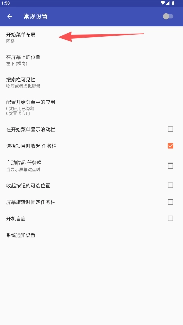 2、设置网格菜单的开始布局界面,完成系统效果调试。