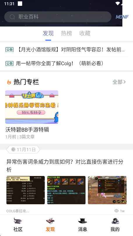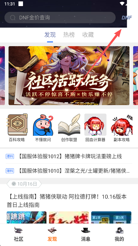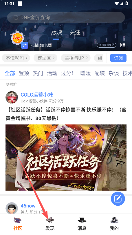1. 进入本站的colg地下城与勇士论坛,然后点击发现板块。