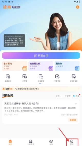 1、打开提词类应用,点击底部我的选项,进入个人中心页面。