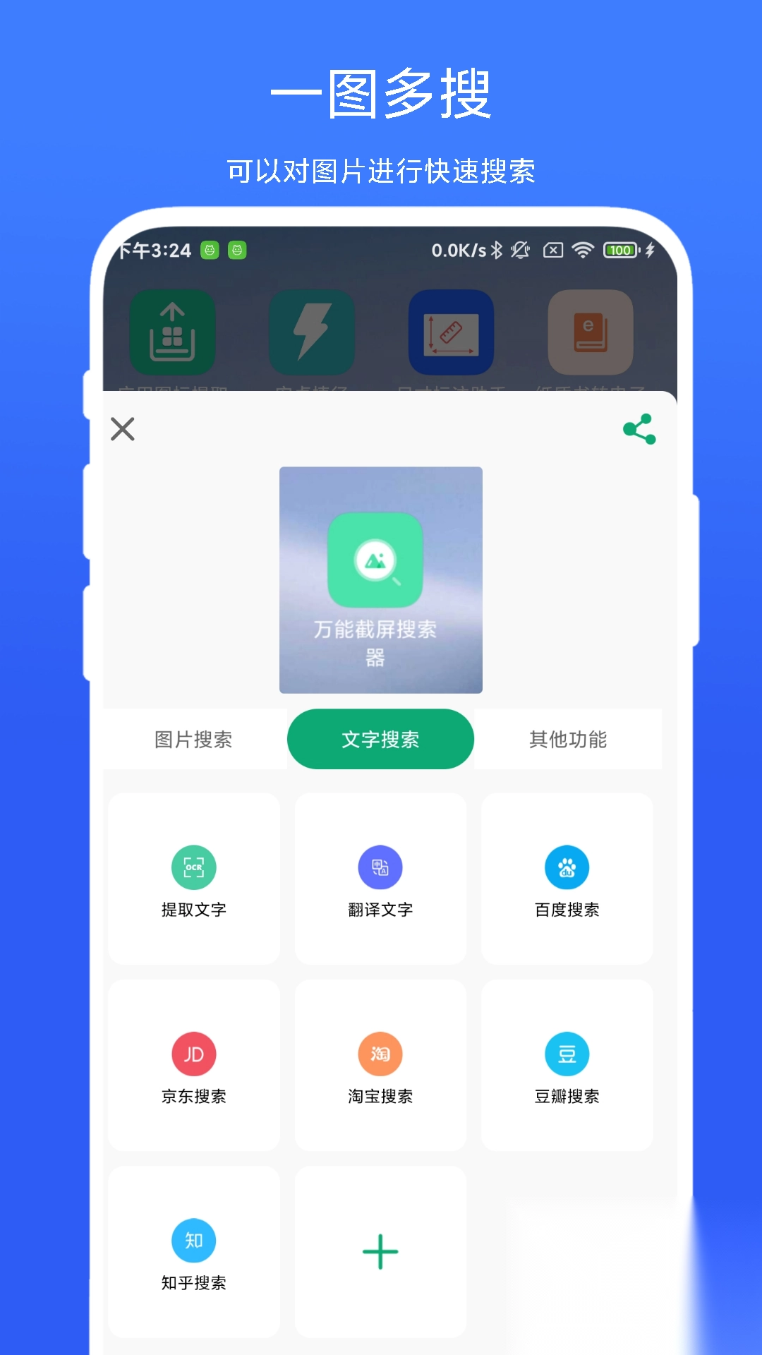 1. 提供图片搜索、文字搜索、翻译搜索等多种搜索模式,并且整合了百度、京东、淘宝、豆瓣、知乎等多个平台的搜索入口。