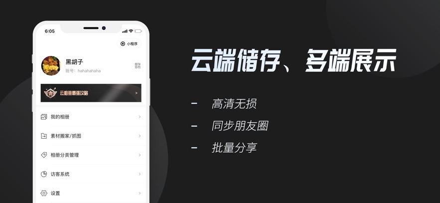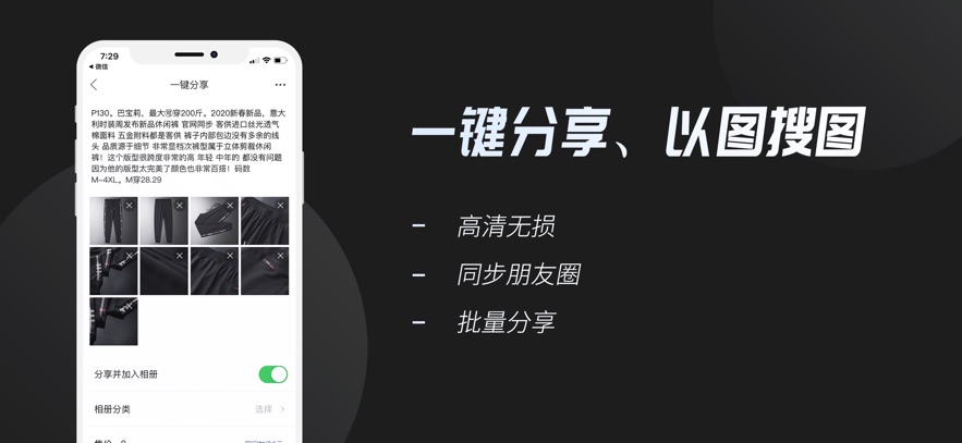 团队相册云共享,支持从朋友圈、好友相册自动上传货源到工具相册。