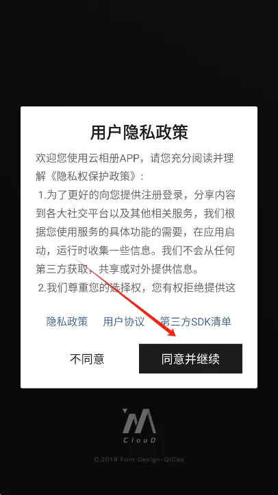 1、我们如果要使用云相册,那么一定是需要同意权限使用的
