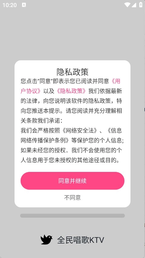 1. 启动全民唱歌KTV应用程序,仔细查阅并确认同意隐私政策以及用户协议。