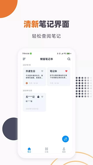 懒猫笔记本,一款颇为不错的笔记记录软件。借助它,用户能够记录形形色色的笔记,无论是突发的想法,还是工作事务,亦或是学习笔记等内容,都能轻松记录,随时随地,不受限制。不仅如此,该软件还具备云同步功能,能帮助用户把笔记数据备份到云端。要是你对此感兴趣,那就别犹豫,赶紧来体验一番吧。