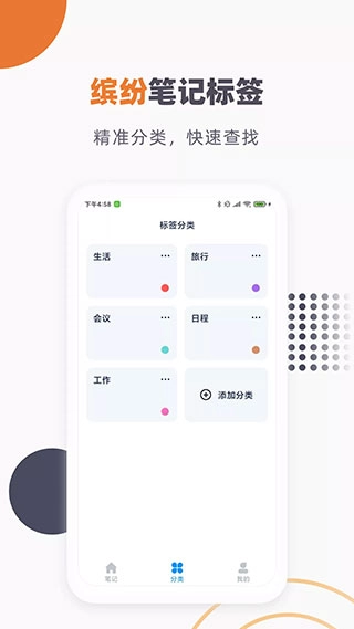 2、点击“分类”-“添加分类”,添加分类标签,添加新分类并设置颜色,这样不同分类标签之前更好有效的辨认与记忆