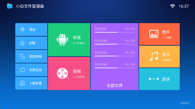 小白文件管理器TV版,这是一款专业的文件管理应用程序。用户可以将其安装在电视上,随时随地享受出色的电视文件管理体验。无论是安装各类APK安装包,还是清理电视文件,操作都极为便捷。有需求的朋友,现在就来使用吧!
