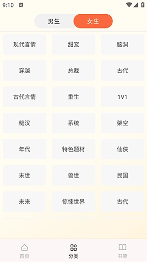 特色频道划分,打造男生、女生专属的阅读空间