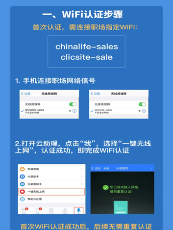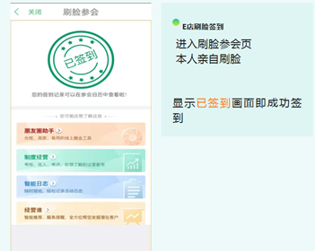 第2步认证成功,可以正常使用网络第3步进入国寿e店首页,点左上角“刷脸签到”