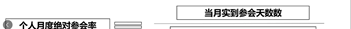 分子:当月实到参会天数=正常参会实到天数+迟到天数+早退天数+活动参会天数(即公假)