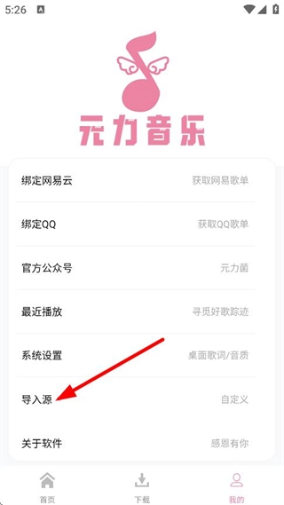 2、在个人中心页面,点击导入源,弹出导入自定义源窗口。
