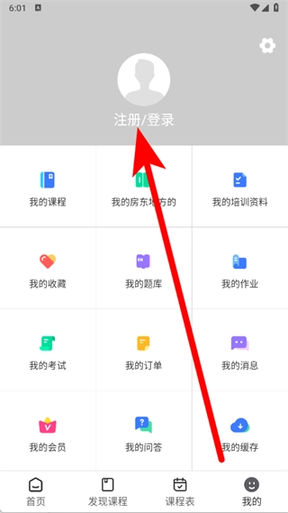 2. 当进入“我的”页面后,点击“注册登录”选项。