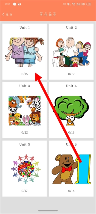 2、进入单词趣背页面后,选择要学习的单元。
