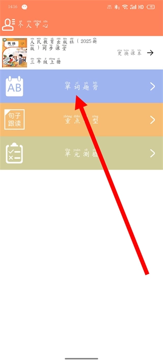 1、打开小学英语同步课堂,点击单词趣背选项。