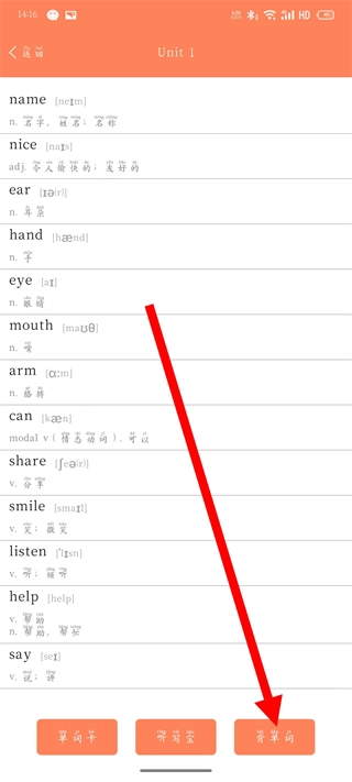 3、在单元单词列表页面,点击底部背单词按钮。