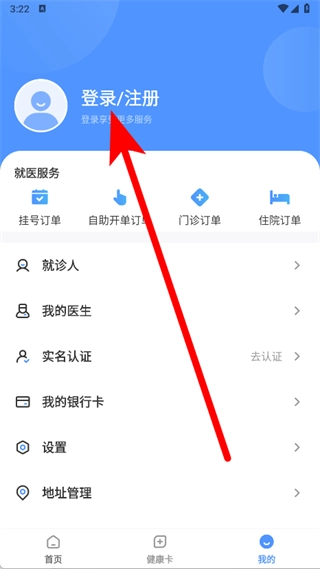 2、进入我的页面后,点击登录注册选项。