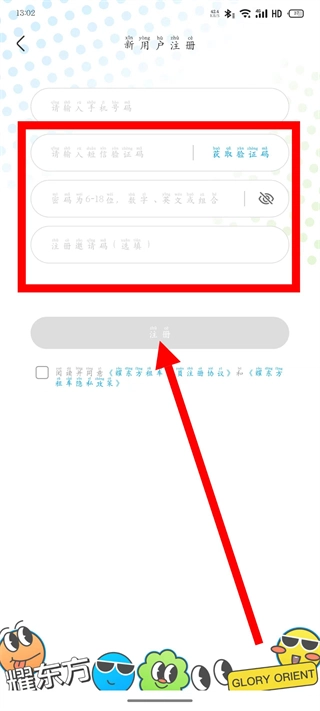 5、输入收到的短信验证码,设置密码,勾选同意相关协议后,点击注册,完成操作。