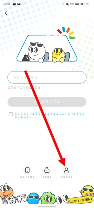 3、于登录注册页面,点击新用户注册选项。