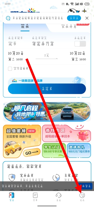 1. 开启耀东方租车应用,轻点底部导航栏最右边的“我的”选项。