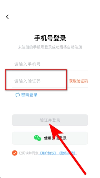 4、输入收到的验证码,勾选同意后,点击验证并登录,完成注册。
