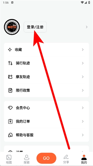 1. 开启摩途,点击底部导航栏最右边的“我的” 。