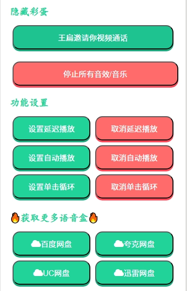 点击按钮播放音效或音乐。请确保设备音量适中。