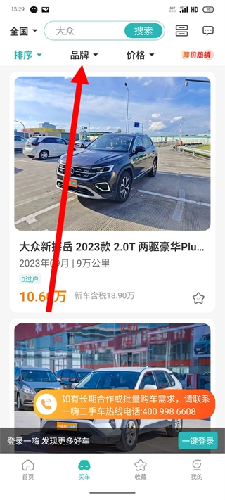 2、进入买车页面后,点击品牌选项,进入品牌选择界面。