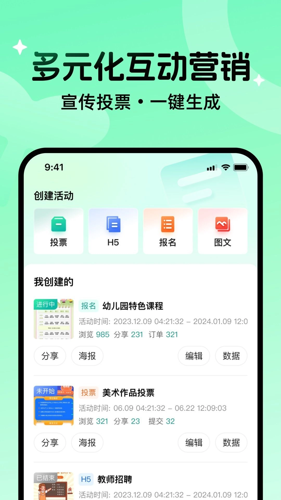 1. 多元互动营销,宣传投票一键生成,营销方式极为简便。
