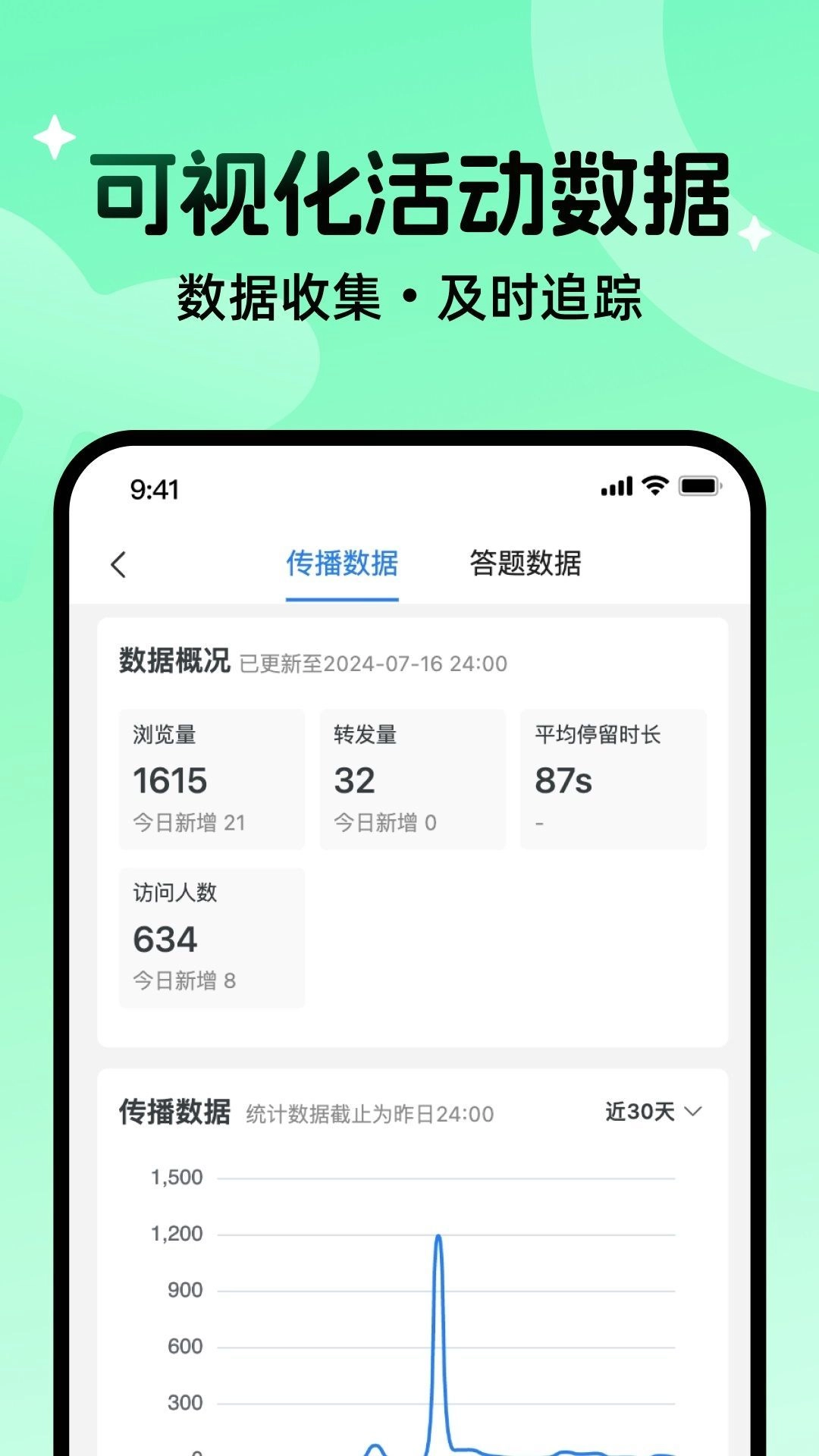 2、数据传播便捷,答题数据清晰呈现,每次查看数据都极为简便。