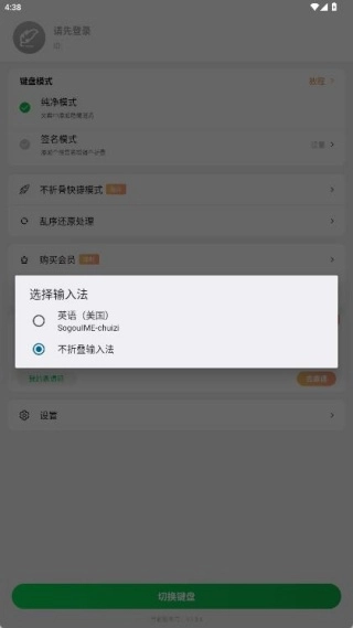 2、在手机系统的输入法管理界面中,将“不折叠输入法”设为默认输入法。